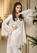 Exude effortless elegance in this pure white ensemble that combines classic grace with intricate craftsmanship. The Shirt is beautifully adorned with delicate Lace Borders, cutwork Embroidery, and Handcrafted detailing that radiates feminine charm. The look is completed with an Airy Net Dupatta featuring scalloped edges and soft Embroidery, along with straight Trousers enhanced with lace embellishments. Perfect for festive gatherings, summer soirées, or graceful daytime events, this outfit defines timeless sophistication in every detail.