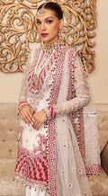 Indian & Pakistani Style White and Red Embroidered Net Formal Ensemble for Women