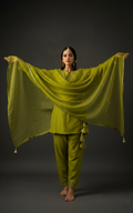 Pakistani & Indian Ethnic Kurta Pant Set with Tassel Dupatta