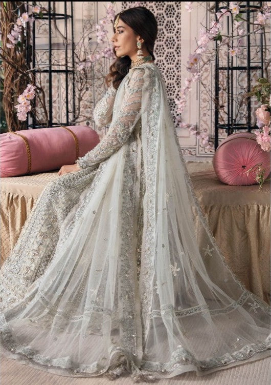 A luxurious embroidered and embellished ensemble featuring a net shirt with detailed upper body and Kali work, complemented by matching embellished sleeves and hem borders. The set includes a beautifully embroidered Dupatta with a center panel and pallu, along with a Dyed Raw Silk Inner Slip, offering a complete, elegant outfit perfect for festive or formal occasions.