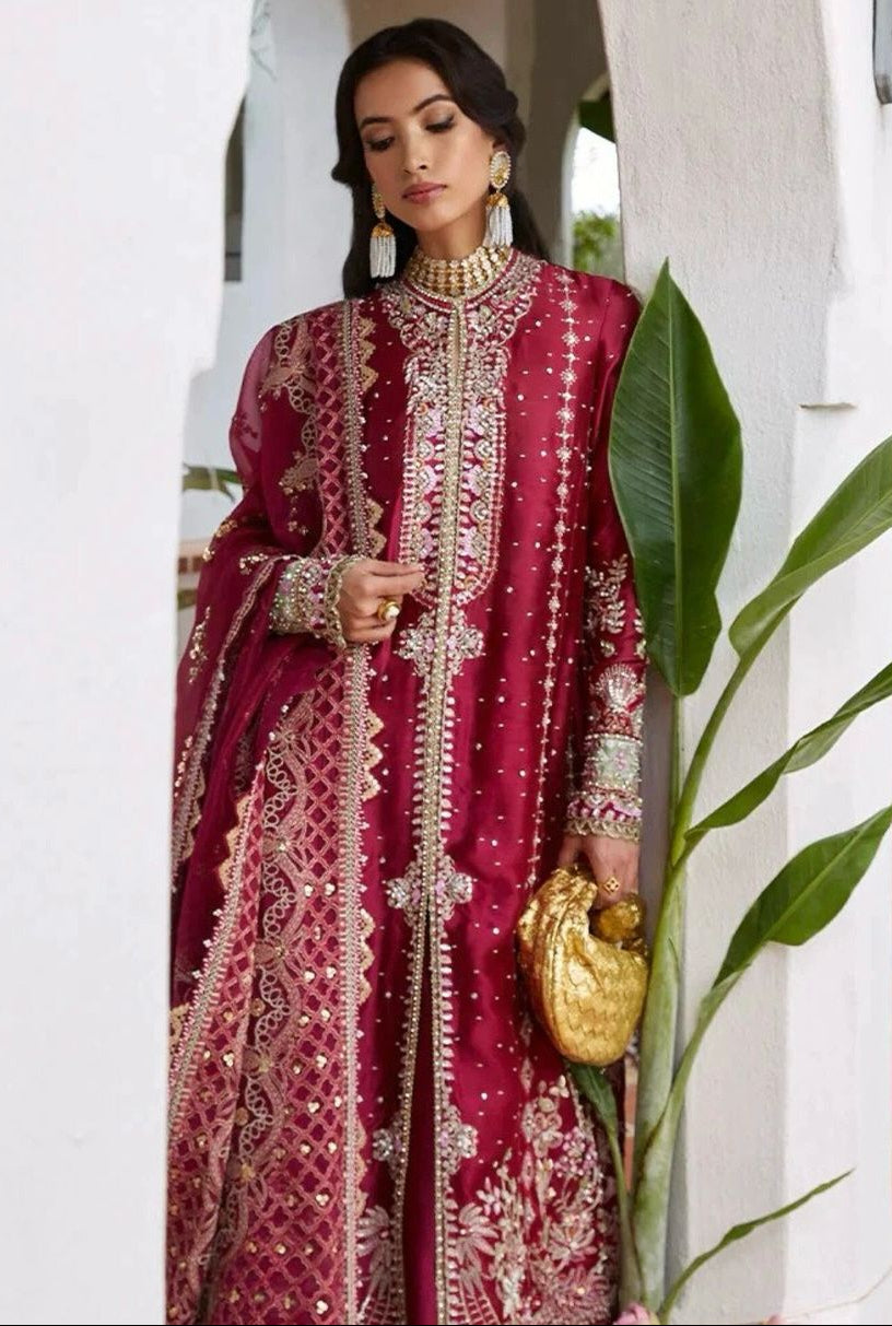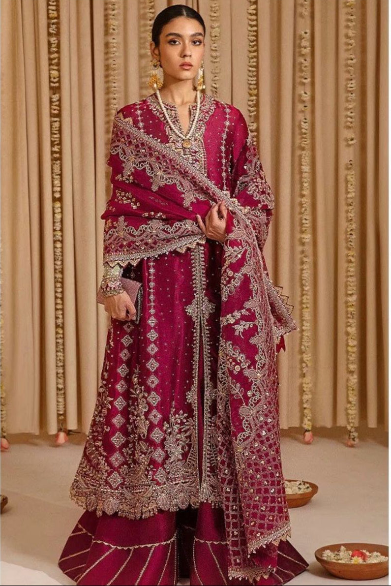 Pakistani Maroon Heavy Embroidered Formal Dress — Luxury Chiffon Ensemble with Adda & Zari Work