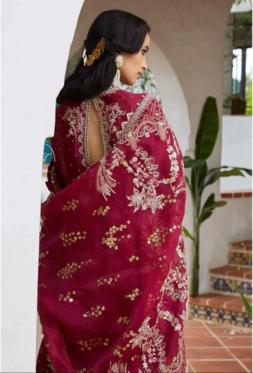Grace your festive occasions with this regal Maroon Chiffon Ensemble, meticulously crafted with Hand Adda work, Zari detailing, and Sequin Embellishments. The ensemble reflects the timeless charm of South Asian couture, combining traditional craftsmanship with a modern silhouette — perfect for weddings, receptions, and glamorous occasions.
